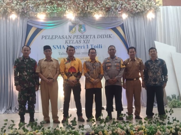 BANGGAI – Kapolsek Toili AKP Raden Hermawan menghadiri pelepasan pelajar Kelas XII di SMA Negeri 1 Toili Kabupaten Banggai, Selasa (15/4/2025) pagi.