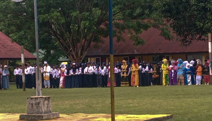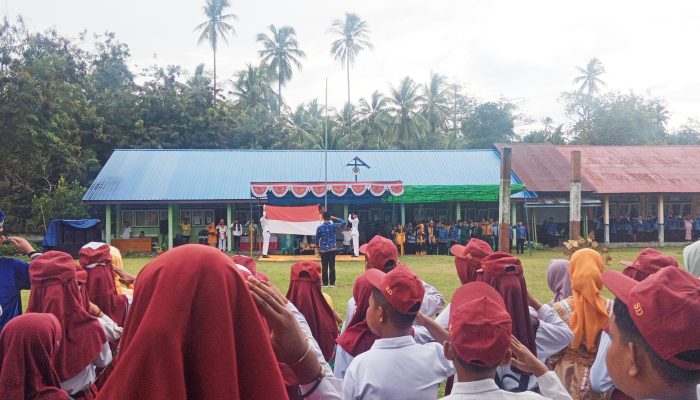 BANGGAI – Camat Nambo, Zubhan Ahmad S. Sos, bertindak sebagai pembina upacara peringatan Hari Pendidikan Nasional (Hardiknas) yang digelar di halaman SMP. N 2 Kintom, Desa Padungnyo, Kecamatan Nambo, Kabupaten Banggai. Jumat (2/5/2025).