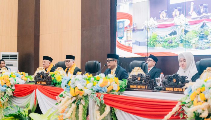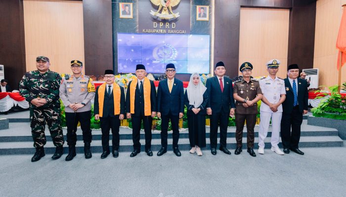 BANGGAI – Bupati Banggai Amirudin yang kembali terpilih untuk masa jabatan 2025-2030 menyampaikan pidato perdananya dalam Rapat Paripurna DPRD Kabupaten Banggai, Rabu (4/6/2025), di Gedung DPRD Banggai, Luwuk.