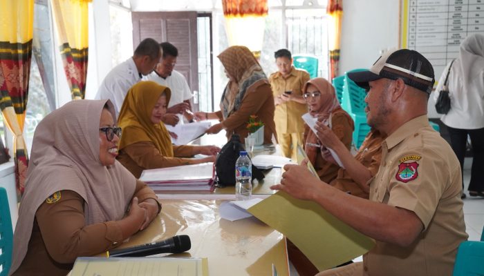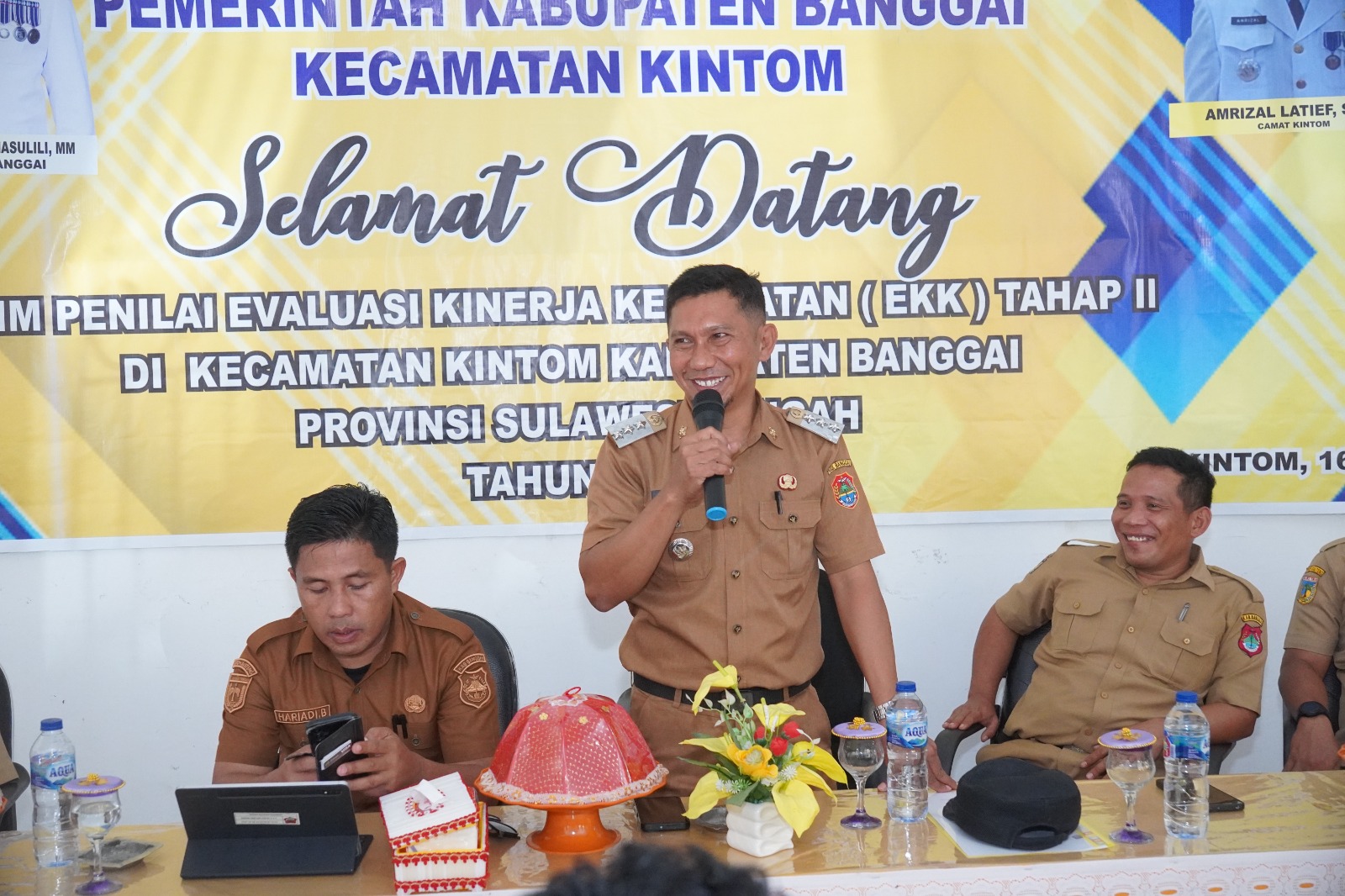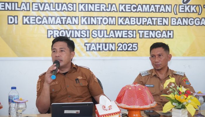 BANGGAI – Kegiatan Evaluasi Kinerja Kecamatan (EKK) Tahap II Tahun 2025 pada hari ini, Senin (16/06/2025), berlangsung di Kantor Camat Kintom. Kintom adalah kecamatan ke-10 dari 24 kecamatan yang akan di evaluasi. Masih seperti pada 9 kecamatan sebelumnya, dilakukan verifikasi lapangan berdasarkan data self assesment yang dilakukan di masing-masing kecamatan. Tahap II ini lebih menitikberatkan pada verifikasi lapangan, guna menilai kondisi riil di lapangan dan memastikan kesesuaian data dari self assesment dengan fakta.