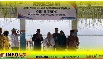 ININFO.ID, Batudaka – Wakil Bupati Tojo Una-Una, Hj. Surya melakukan peresmian Rumah Produksi serta Launching Cemilan Gula Tapo Togean di Desa Bomba, Kecamatan Batudaka, Selasa (15/7/25). Ini menunjukan keseriusan Pemerintah Kabupaten Tojo Una-Una yang terus berkomitmen dalam mendorong kemandirian ekonomi berbasis potensi lokal.