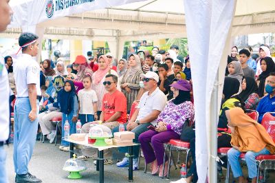 Di hadapan jajaran Pemda dan warga yang hadir, para peserta unjuk variasi gerakan yang dinilai oleh juri. Sorak penonton pun jadi penyemangat bagi peserta gerak jalan.